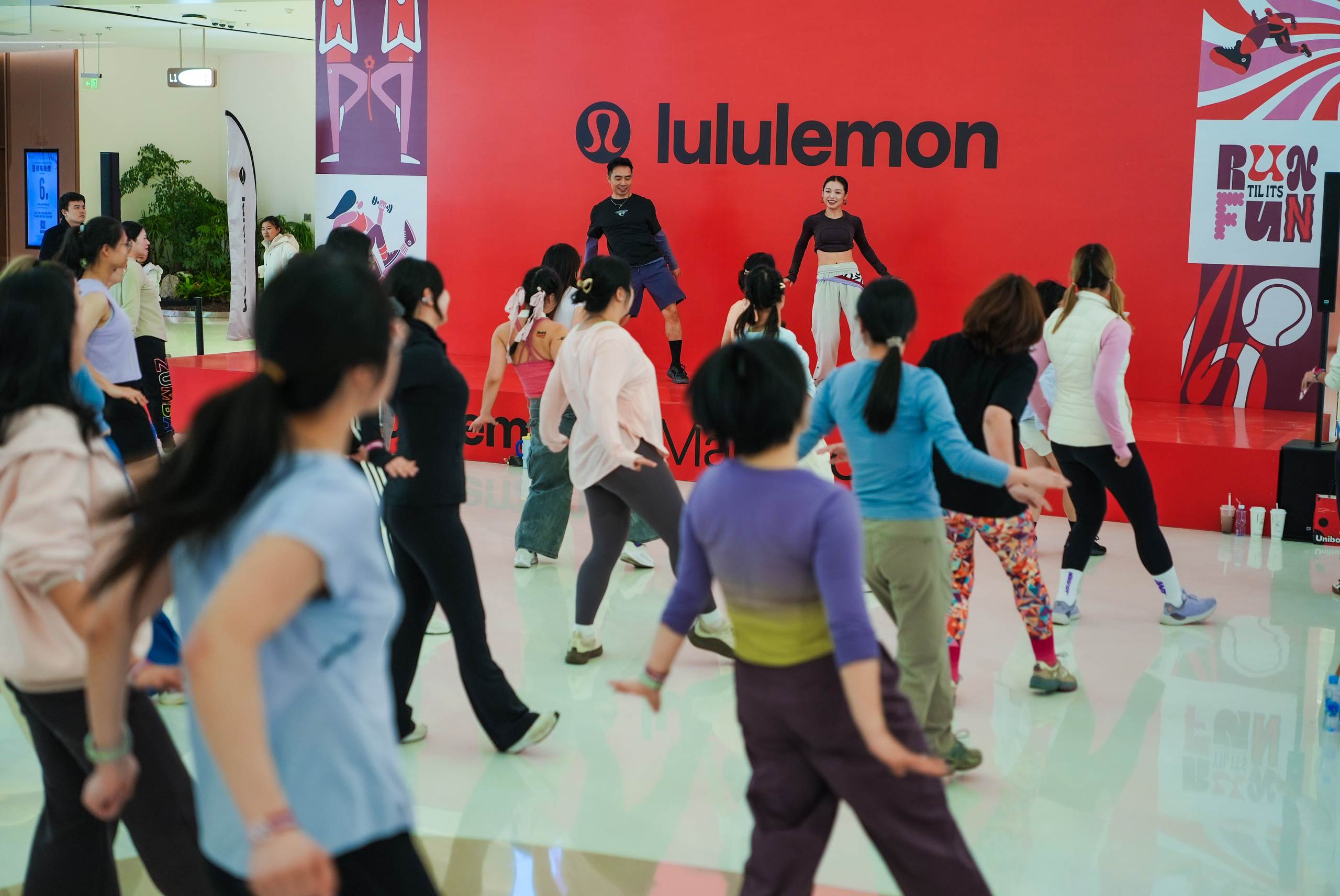 与传统零售模式不同,lululemon将开业日打造成了一场运动社群聚会。店内举办的热汗活动人气爆满,由专业产品教育家带领参与者体验瑜伽等课程,让消费者在运动中感受产品性能。这种体验式开业模式使店铺成为运动爱好者交流互动的社区空间,增强了品牌与消费者之间的情感连接。