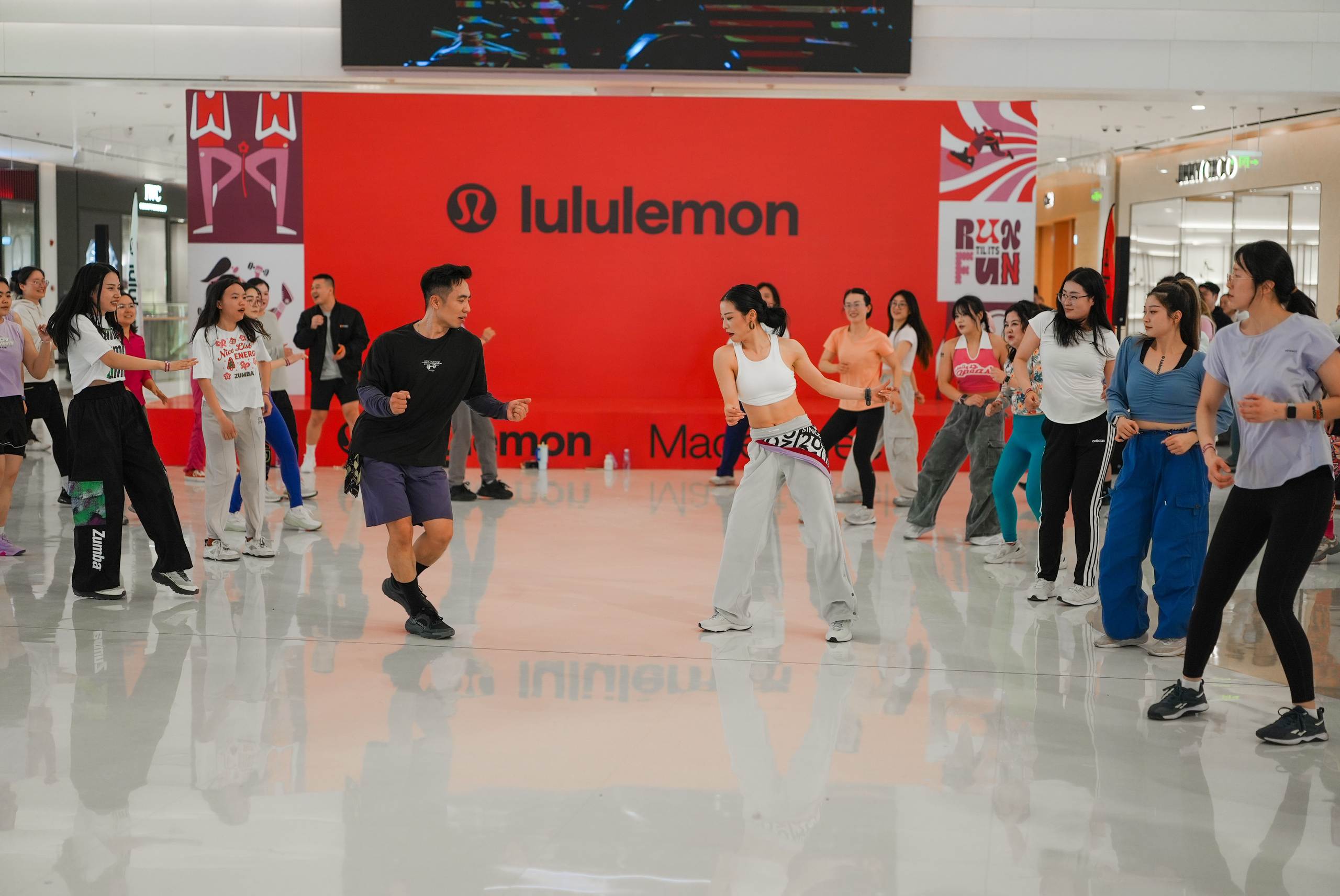 1月15日,国际运动生活方式品牌lululemon在南昌ac米兰官网MALL二楼盛大开业,为洪城带来全新高端运动消费体验。开业当天,lululemon标志性的热汗活动点燃全场,一场充满活力的“全民跳操”活动在一楼高化区中庭接力举行,将热汗氛围推向高潮,吸引了众多运动爱好者和时尚达人前来打卡体验。